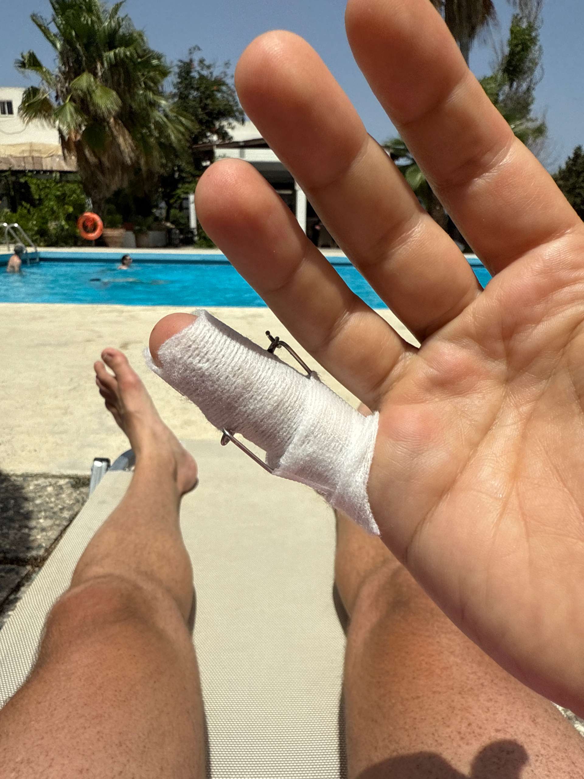 Nursing a broken finger in the heat
